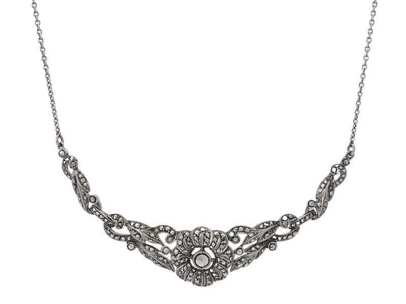 NECKLACE, silver, marcasites, length 49 cm, weight 13,7 g, missing one marcasite.