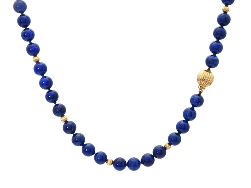 NECKLACE, lapis lazuli, clasp and spacers in 18K gold, length 44 cm, weight 39,2 g.