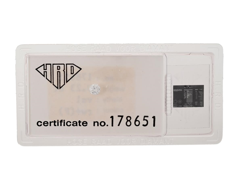 DIAMOND, brilliant cut, 0,23 ct, TW(F)/VS1, HRD certificate 178651, sealed.