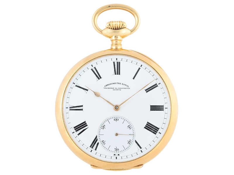 VACHERON & CONSTANTIN, Genève, Chronometre Royal, pocket watch, 57 mm, Serial no. 367878, Case no. 228818, 18K gold, lever escapement, wolf tooth, cuvett in 18K gold, monogram, approx. 1918.