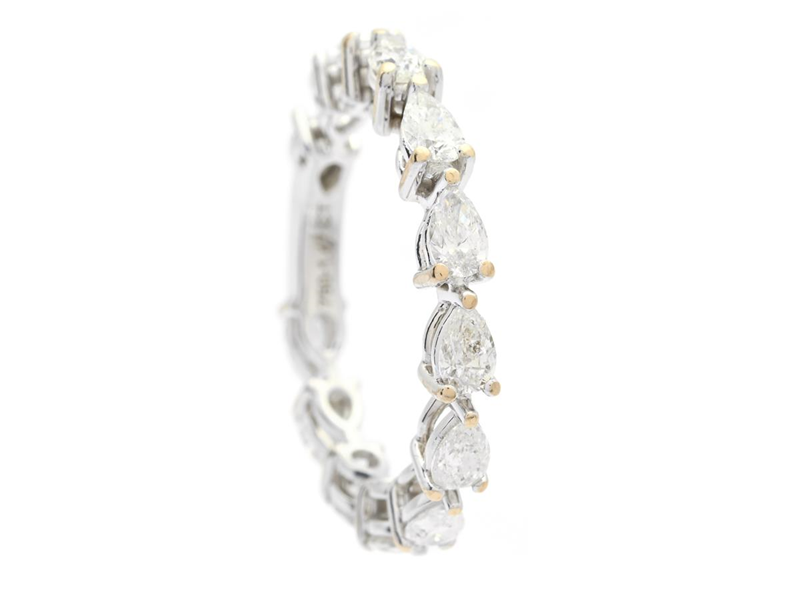 ETERNITY RING, 18K white gold, 13 pear shaped diamonds 1,47 ctw, approx. TW-TCr/SI-P, size 17,25 mm, weight 3,1 g, one stone with small notch.