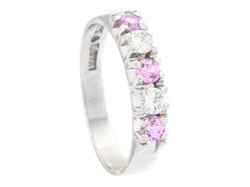ETERNITY RING, 18K white gold, 2 brilliant cut diamonds 0,20 ctw acc to engraving, approx. W/VS, pink sapphires, Karlskrona 1988, size 17 mm, weight 3,2 g.