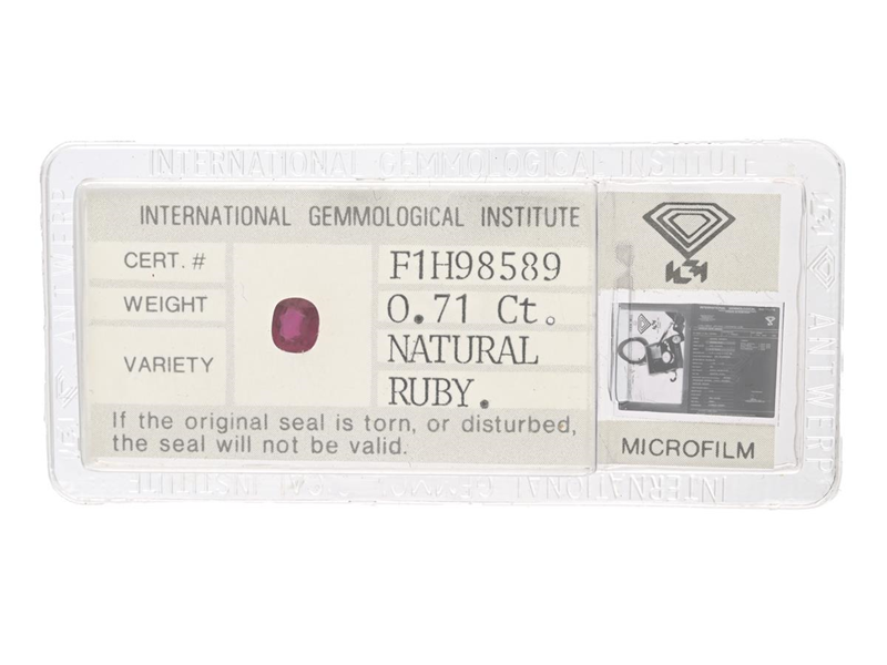 RUBY, oval-cut 0,71 ct, IGI certificate, sealed.