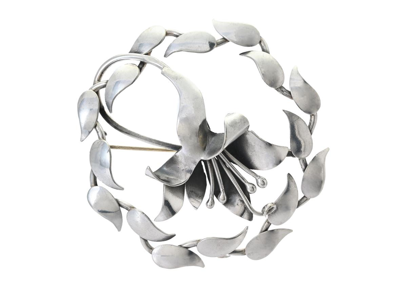 BROOCH, flower, silver, Pinco Förening UPA, Stockholm 1951, height 60 mm, weight 15,1 g.