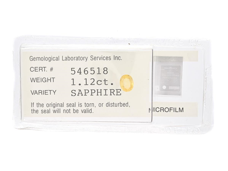YELLOW SAPPHIRE, oval-cut 1,12 ct, sealed, GLS certificate.