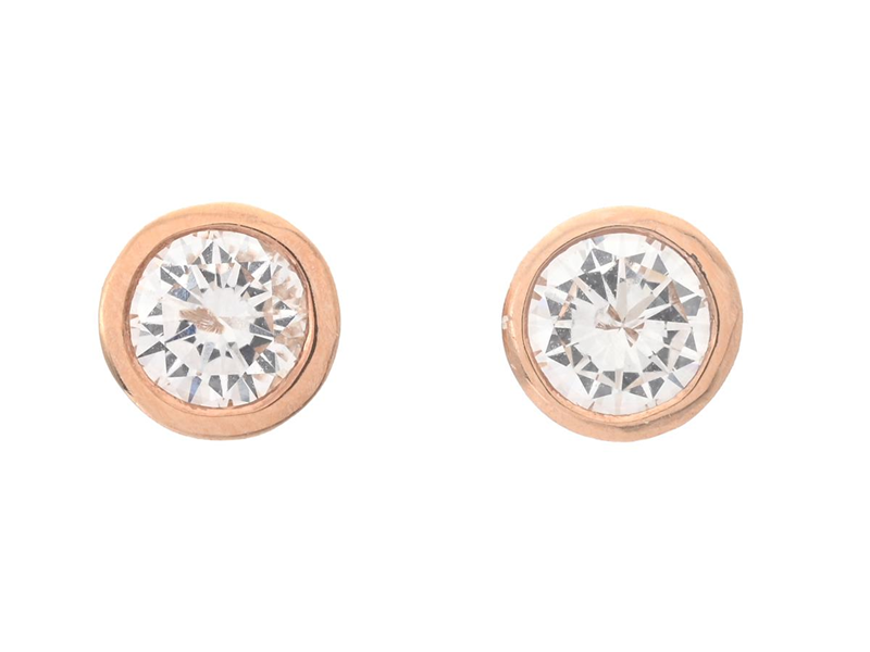 SOLITAIRE EARRINGS, 18K rose gold, brilliant cut diamonds approx. 0,50 ctw approx. W/P, pushback, weight 2,0 g, one diamond with damaged culet.