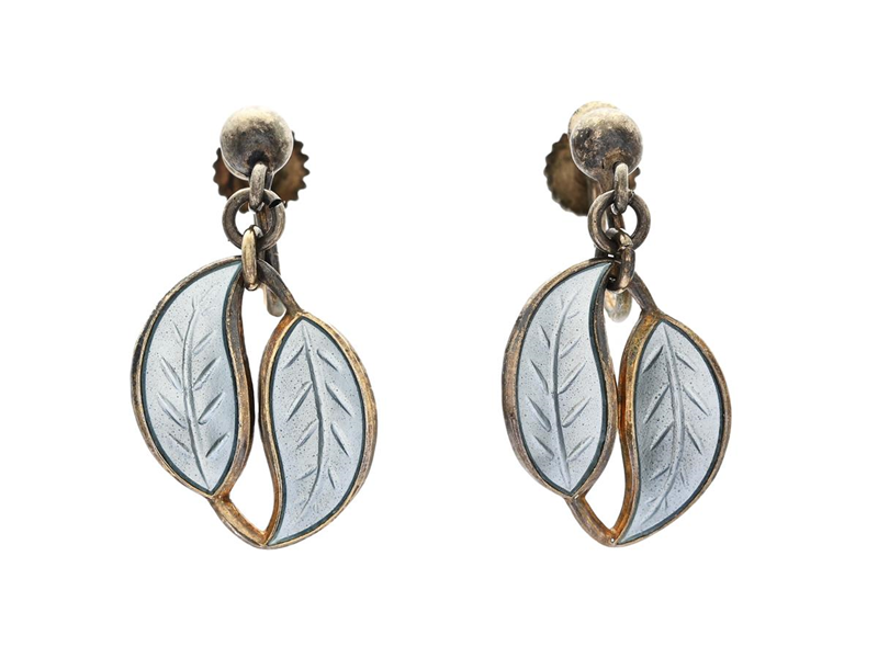 EARRINGS, sterling silver, white enamel, Norway, weight 3,8 g, screwbacks.