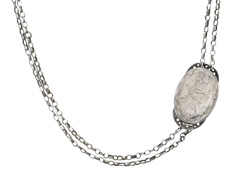 ELIAS PETTER MODIN, necklace, 2- strand anchor chain, engraved decor, Sundsvall 1811, length 57 cm, weight 17 g, dented clasp,