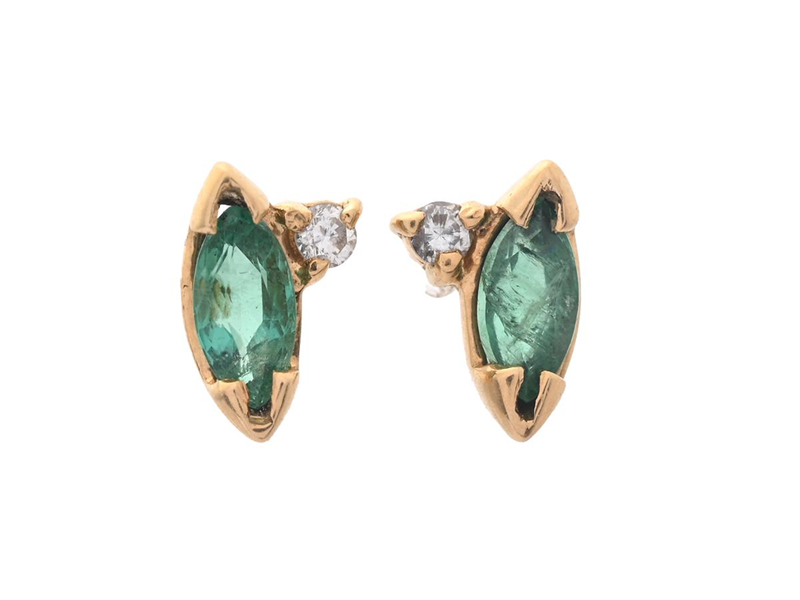 EARRINGS, 18K gold, marquise cut emeralds, brilliant cut diamonds approx. 0,03 ctw, pushback, weight 1,3 g,