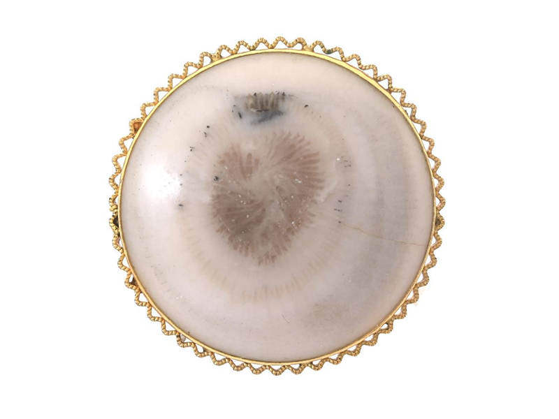 BROOCH, gilt metal, fossilized coral, diameter 42 mm, weight 18,2 g.