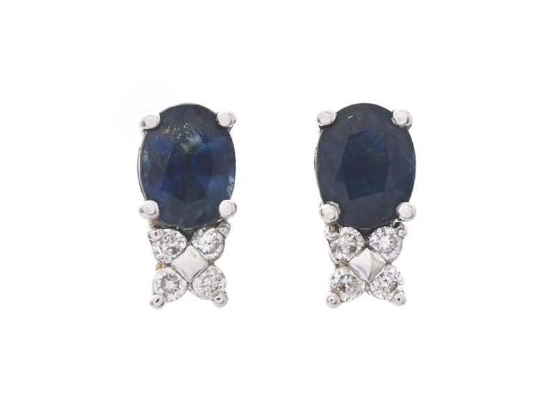 EARRINGS, 18K white gold, blue sapphires, 8 brilliant cut diamonds approx. 0,10 ctw, height 8 mm, weight 1,5 g,