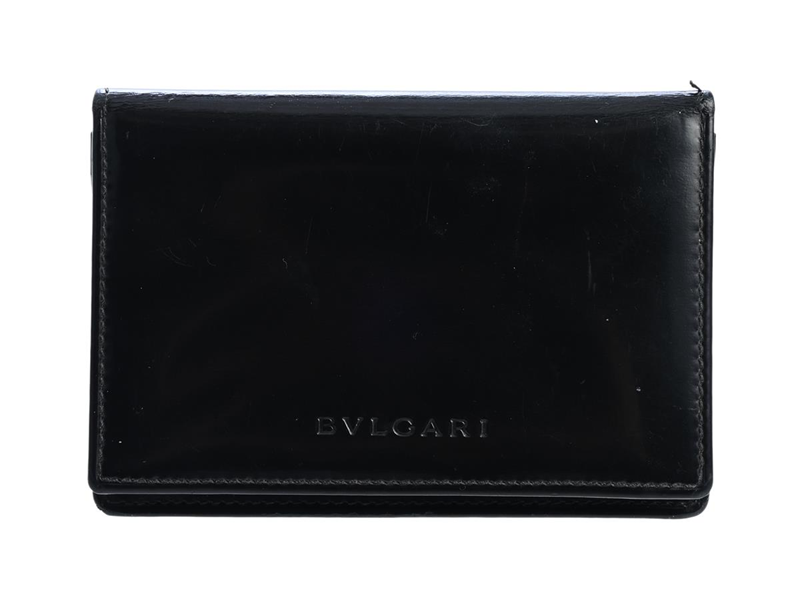 CARD HOLDER, BVLGARI, black patent leather, 11x7 cm, card, bank-note.