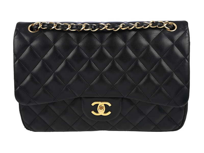 BAG, CHANEL, Jumbo Double Flap Bag, black quilted lambskin, gold-tone hardware, 30x20x9 cm, hologram-marked 25470967, year 2018-2019, receipt from 2018, cleaning cloth, dustbag, signs of wear on corners.