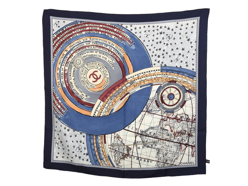 SCARF, CHANEL, 100% silk, 86x86 cm, multi-coloured, blue, white, case, stains.