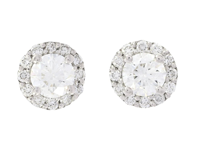EARRINGS, 18K white gold, 2 brilliant cut diamonds 1,13 ctw, TW(F)/VS2- SI1, GIA certificate 1529821501, 1523372171, 24 brilliant cut diamonds 0,38 ctw, pushback, diameter 8 mm, weight 2,4 g.
