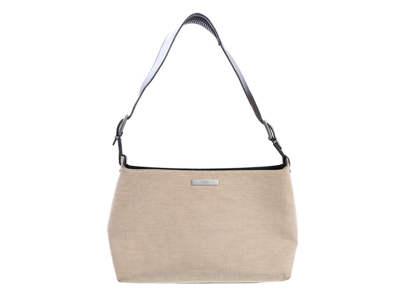 BAG, GUCCI, beige fabric, brown leather, silver-tone hardware, 30x20x6 cm, signs of wear.