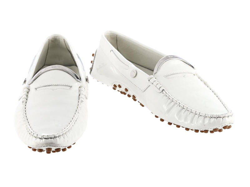 SHOES, TODS, white patent leather, silver-tone hardware, size 9 approx. 40, dustbag, box.