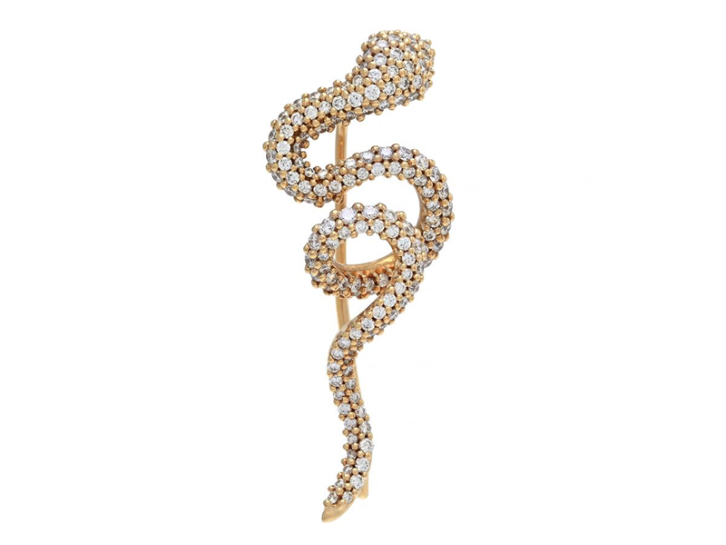 OLE LYNGGAARD, single earring, Snakes Ear Climber Pavé, right ear, 18K gold, brilliant cut diamonds 0,59 ctw, TW/VS, length 31 mm, weight 3,3 g, original case.