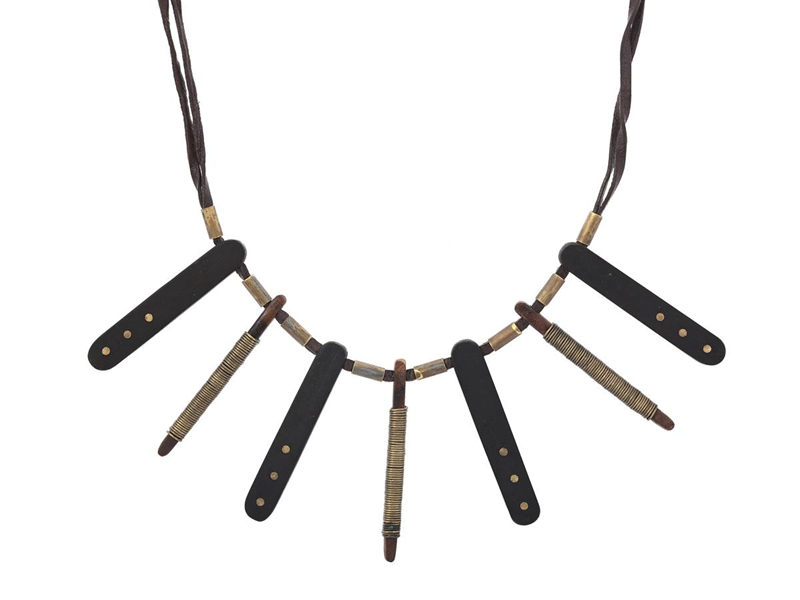 VIVIANNA TORUN BÜLOW-HÜBE, necklace, jacaranda, leather, brass, Stockholm approx. 1950, length 37 cm, weight 28,2 g. (d)