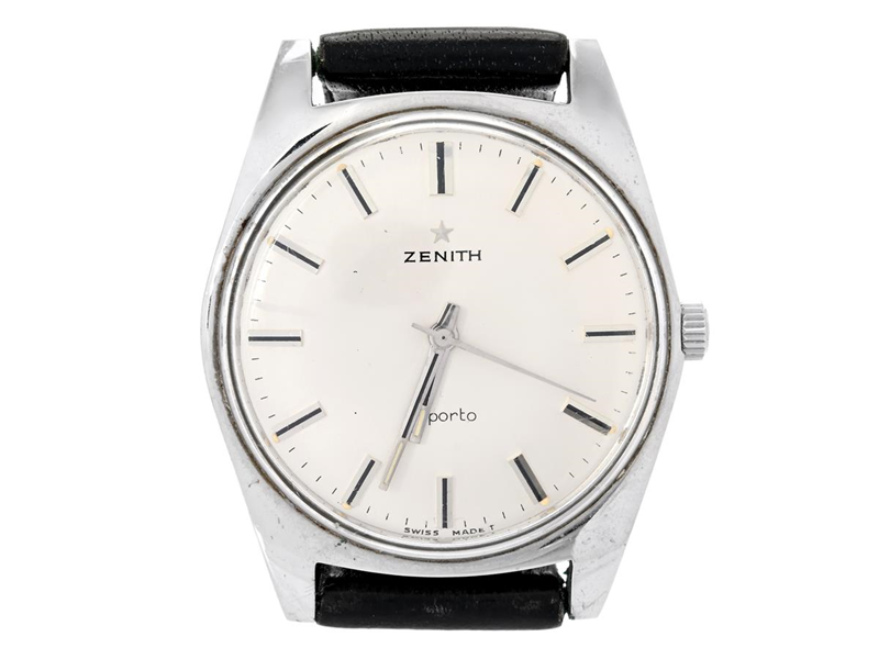 ZENITH, Sporto (Swiss Made T), Cal 2542, Case no. 734D432 / SP 1201 4, men´s wristwatch, 35,5 mm, steel, manual winding, plastic crystal, damaged dial, leather strap, approx. 1965, case.