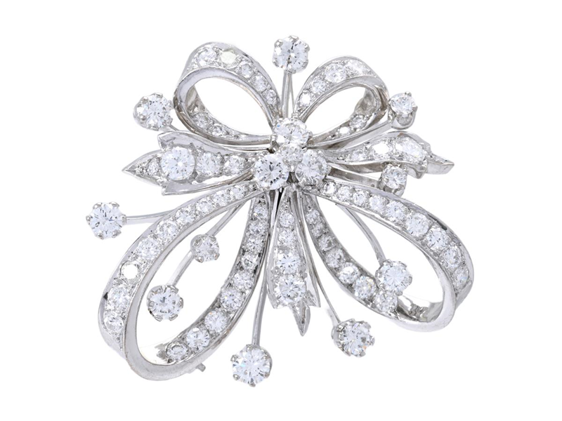 BROOCH/PENDANT, 18K white gold, 70 brilliant- and transitional cut diamonds approx. 3,60 ctw, approx. R-TCr/VVS-VS, Lawepe, Stockholm 1950/60´s, measurements 40x40 mm, weight 13,6 g, a few diamonds has notches and damages.