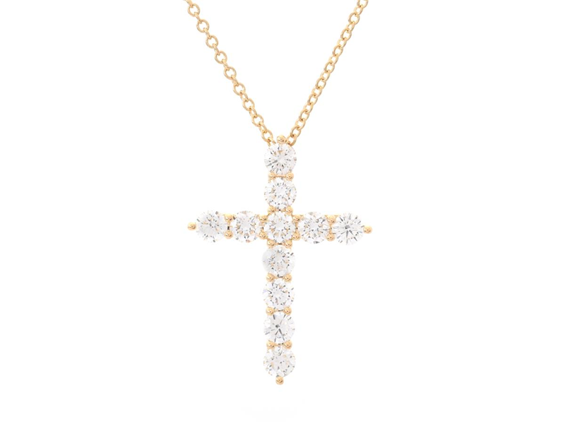 NECKLACE, 18K gold, 11 brilliant cut diamonds approx. 0,88 ctw, approx. TW-TCr/VVS-VS, cross 20 x 15 mm, chain 42/45 cm, weight 2,8 g.