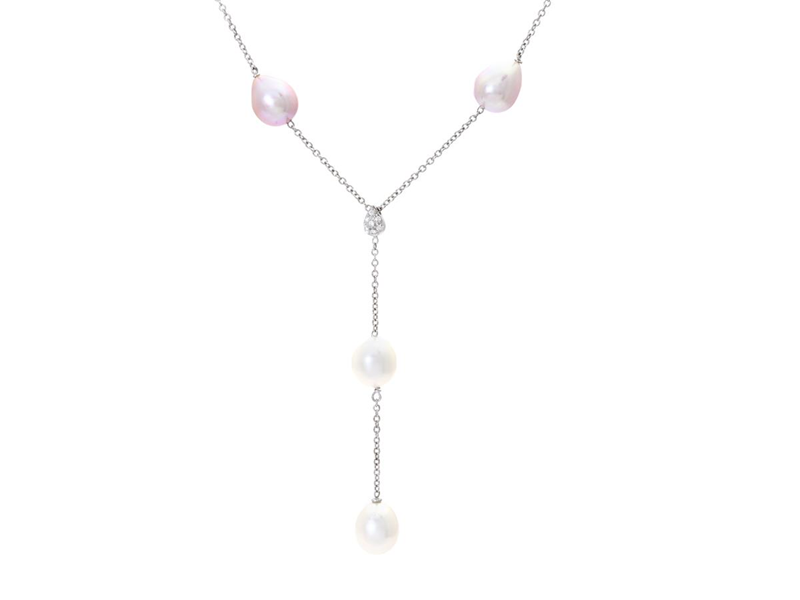 NECKLACE, 18K white gold, white and pink cultured freshwater pearls, brilliant cut diamonds approx. 0,07 ctw, TW-W/VS-SI, length 38 cm, height 7 cm, weight 11,0 g.