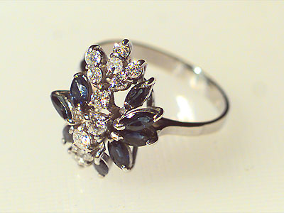 RING, 18K white gold with brilliant-cut diamonds approx. 0.50 ct. approx. W(H)-CR(J)/SI-P1 and sapphires, ringsize 18mm, weight 4.0 g
