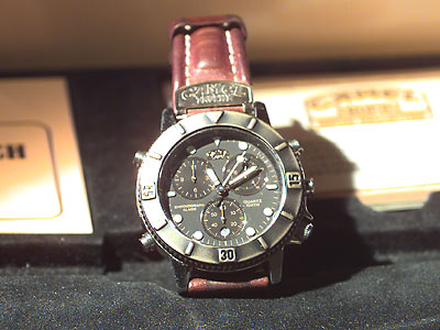 CAMEL TROPHY, Super chrono, men´s wristwatch, steel/metal case, quartz, chronograph, alarm, date, leatherstrap, case.