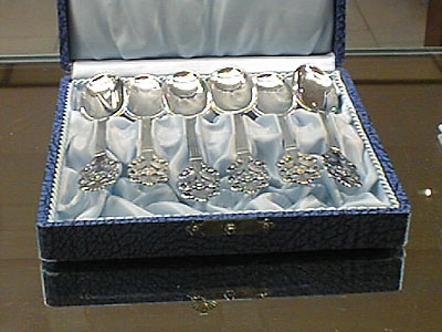 FLATWARE, coffeespoons 6 pcs of in silver från Norway + case.