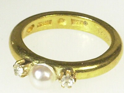 RING, 23K weight 7,8 g cultured pearl ringsize. 16,5