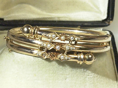 BANGLE, 14K gold, with pearls, en pearl missing.