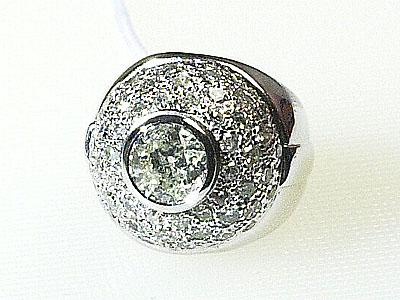 RING, 18K white gold, brill cut dia approx 1,70 ct, TCa /Pique´, brill cut dias + eight cut dias approx 3 cts, ringsize 16, W=12,6 gr.