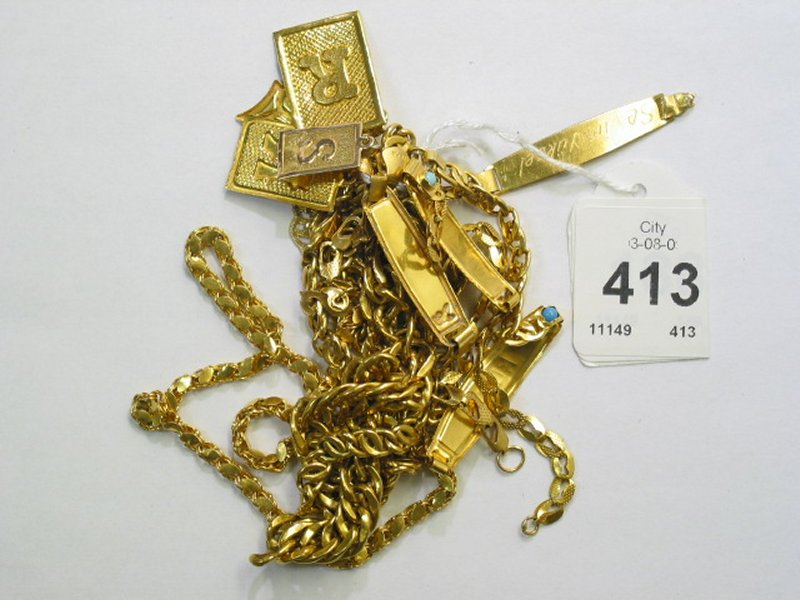 6 bracelet varav 2 imperfect, 5 pendants, 1 chain 22K. weight 55,9g