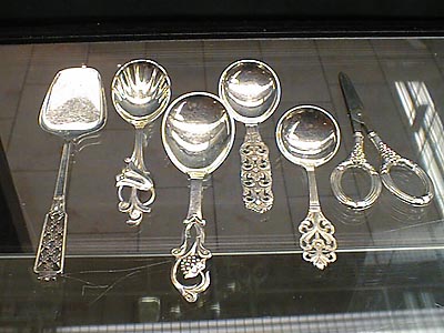 GRAPE-SCISSORS, TART-SLICE, 4 MARMALDESPOONS, silver.