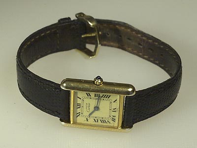 CARTIER, Tank, no. 366001/84832, ladie´s wristwatch, gilt silver, quartz, mineral crystal, leatherstrap, approx 1988.