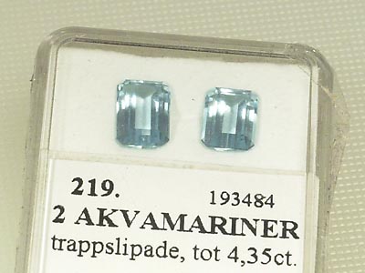 2 AQUAMARINES step-cut, tot 4,35ct.