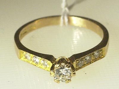 SINGLE-STONE RING, 18K, 1 brilj. approx 0,24 ct W/VS, 6 brilliant-cut diamonds approx 0,26 ct ringsize. 18.5 mm