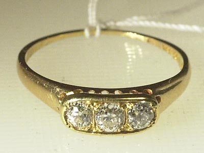 RING, 18K gold, 3 old-cut diamonds approx 0,50 ct of total weight, TW/VS- SI, made in Stockholm 1898.