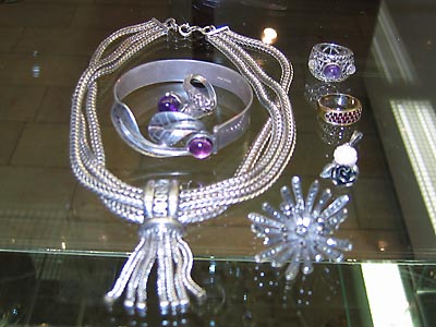 7 PCS OF JEWELLERY in silver with bl. a. amethyst & coral.