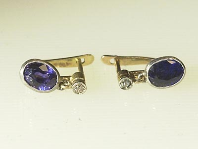 EARRINGS, 18K gold & platinum, 2 oval-cut blue sapphires approx 1,60 cts, 2 old-cut dias approx 0,03 ct, posts