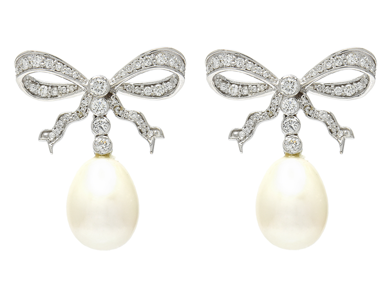 EARRINGS, 18K white gold, rosetter, brilliant cut diamonds 1,04 ctw, approx W/VS-S, pear shaped freshwater pearls approx 9,80-10,46 mm, length 3 cm, weight 9,9 g.