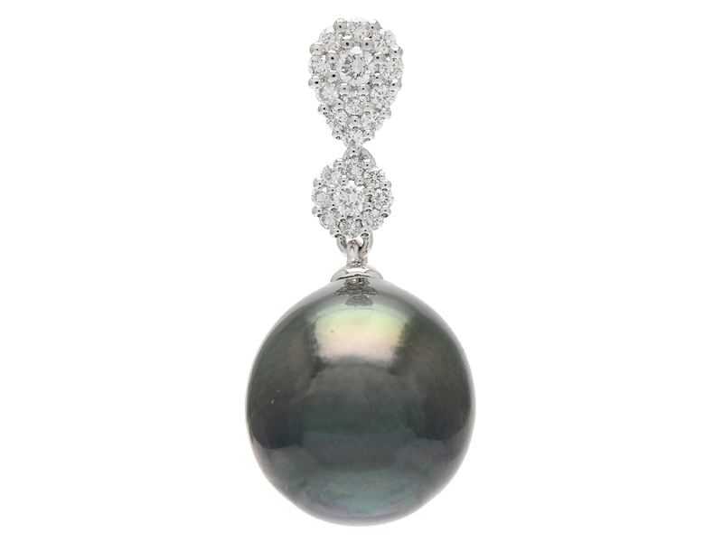 PEARL PENDANT, 18K white gold, with Tahitian pearl approx 11,6 mm, 21 brilliant cut diamonds approx 0,18 ctw, approx TW/SI.