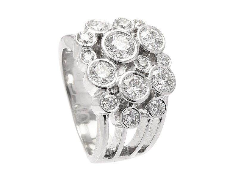 RING, 18K white gold, 15 brilliant cut diamonds approx 1,95 ctw (5 dias approx 0,33 - 0,50 ct/ea, 10 dias approx 0,04 - 0,18 ct/ea), approx TW-TCr/VS-SI, size 18 mm, weight 17,1 g.