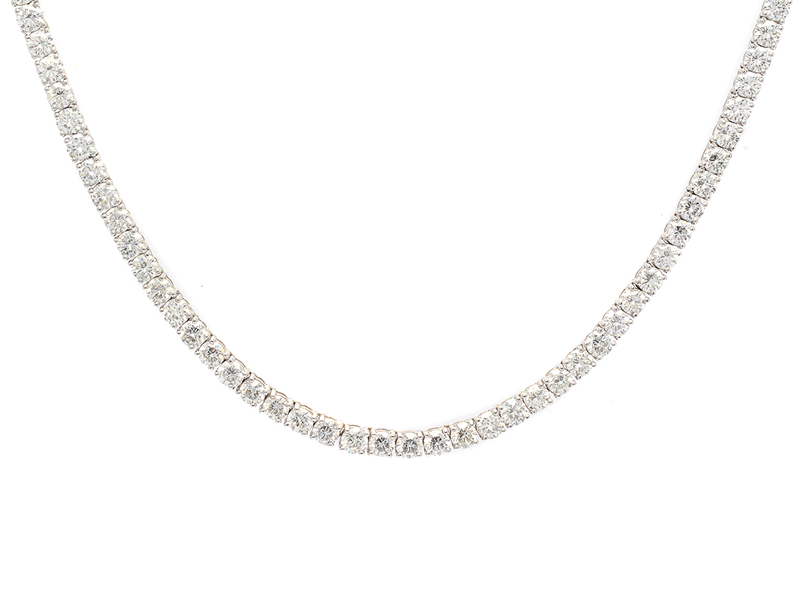 RIVIERE NECKLACE, 18K white gold, 107 brilliant cut diamonds 21,95 ctw, approx TW-Cr(G-J)/SI-P, length 42 cm, weight 26,6 g.