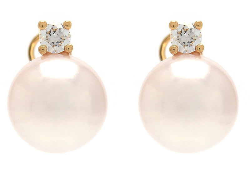PEARL EARRINGS, 18K gold with cultured pearls 7,2 mm, 2 brilliant cut diamonds approx 0,10 ctw, approx W/SI, pushback