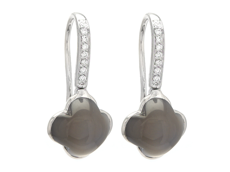 HULCHI BELLUNI, EARRINGS, 18K white gold with 2 moonstones 5,19 ctw, 16 brilliant cut diamonds 0,08 ctw, G/VS, hook, certificate