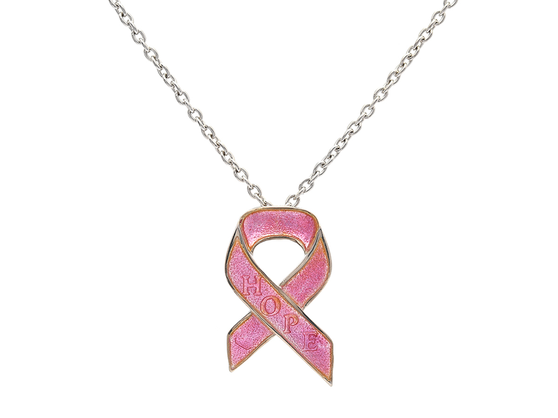 PENDANT/CHAIN, silver, pink enamel, length 40 cm.