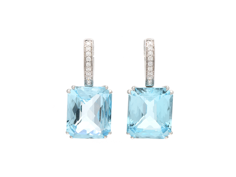 EARRINGS, 18K white gold with 2 blue topazes approx 16,20 ctw, 40 brilliant cut diamonds 0,22 ctw, W/SI, huggies, weight 8,8 g