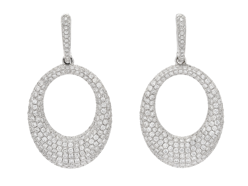 EARRINGS, 18K white gold, 592 brilliant cut diamonds 4,13 ctw, TW-Cr/VS-P, huggies, height 42 cm, weight 12,1 g.